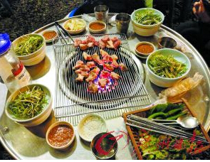 “為了吃上一頓韓國(guó)烤肉,大家拼命往前騎,這成了每天騎行的目標(biāo)。”車友龍輝開玩笑說。這位美食家絕對(duì)是“吃貨”中的高手,每次騎行隊(duì)抵達(dá)一站,不管早晚他都為大家覓食。抵達(dá)浦項(xiàng)后,龍輝很快找到了一家烤肉店,從超市高昂的肉價(jià)推斷,烤肉肯定是奢侈品。不過,車友們已顧不上價(jià)錢,一盤肉不夠,就再上一盤。雖然韓國(guó)泡菜免費(fèi)、美味,但每餐的費(fèi)用不低,7000韓元一餐(約合人民幣42元)基本上沒有肉,有肉的至少要1萬(wàn)韓元。