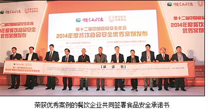 10月18日,第十二屆中國(guó)食品安全年會(huì)在京召開(kāi)。由聯(lián)合利華飲食策劃與中國(guó)食品安全報(bào)社共同主辦的2014年度餐飲食品安全優(yōu)秀案例同期發(fā)布。呷哺呷哺、眉州東坡、旺順閣魚(yú)頭泡餅、西貝莜面村、廖記棒棒雞等12個(gè)餐飲企業(yè)所提報(bào)的案例脫穎而出,榮獲優(yōu)秀案例稱(chēng)號(hào)。