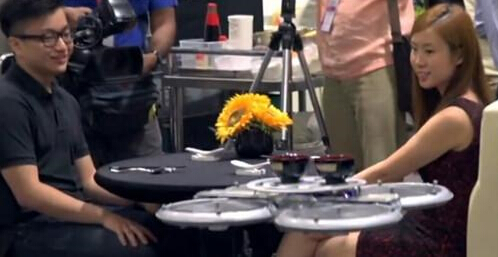 利用無人操控飛行器科技概念,Infinium Robotics公司研發(fā)出“自助無人操控飛行托盤”,服務生只要預先輸入桌號后,把食物放在托盤上,托盤就會自動飛行到客人附近。