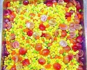 “其實我就想著我們要盡量做些營養(yǎng)均衡搭配的菜,這樣學(xué)生們攝入的營養(yǎng)才全面。就比如說玉米炒葡萄這道菜,我們是在9月份供應(yīng)的,那個時候天氣又熱,很多學(xué)生都吃不下飯,我就想著給學(xué)生們該吃得清淡些,多吃些蔬菜水果,這樣一道菜就出來了啊!