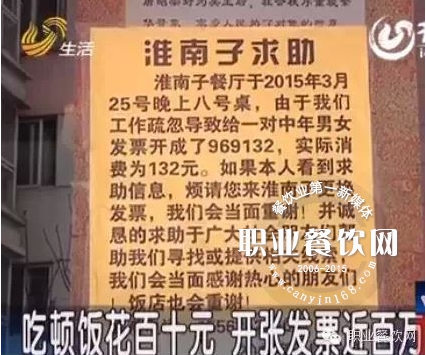 餐企應(yīng)注意淮南子餐廳的經(jīng)理裴女士說這純屬一個(gè)巧合:“當(dāng)時(shí)有位顧客要來開發(fā)票,他消費(fèi)了969元,但是他后來又不要了。收銀員已經(jīng)打上了這三個(gè)數(shù),后來的顧客來開發(fā)票,收銀員就直接輸入了132,結(jié)果就開成了969132!
