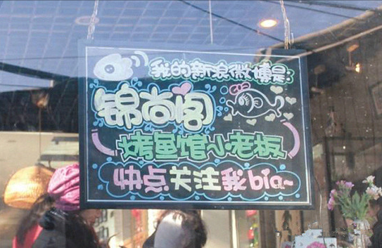 烤魚店開在胡同里,曲徑通幽,但人流量畢竟有限,作為廣告系畢業(yè)生的唐棠如何來推廣宣傳自己呢?唐棠介紹,她開店那會兒,趕上微博熱,于是她立即注冊了一個微博號,用戶名是“錦尚閣烤魚館小老板”,并附上自己的訂餐電話。在微博里,她每天勤勤懇懇地更新,內(nèi)容不全是店里的廣告,而是很多開店的趣事以及自己的生活片段,比如有一條微博是這樣寫的:“員工因家鄉(xiāng)不同,一會兒有離職要去收麥子的,一會兒有離職要去敲松子的,一會兒又有要回家收玉米的……導致我現(xiàn)在對農(nóng)廣天地的收獲時段了如指掌”;“來了一個帥得飛起來的男孩兒,女服務員們都瘋起來、爭著要服務這一桌,我批評了她們:服務行業(yè)怎么能失態(tài)不淡定!怎么能區(qū)別對待!你們知不知道,店是我的,你們是我的,好看的男客人也是我的!這桌我來服務,你們都忙別的去吧……”這些詼諧有趣的情節(jié)以及老板的美照俘獲了眾多同齡人的心,目前她的微博共吸引了5000多名粉絲。唐棠說:“只要勤更新,微博的宣傳效果的確非常顯著而且很持久,開店沒多久,粉絲們就源源不斷地上門來品嘗烤魚,有很多人成了小店的回頭客。到現(xiàn)在,我的新浪微博名字一直寫在小黑板上,掛在店外,來回經(jīng)過的路人有時候也忍不住好奇心關注我的微博,變成潛在客戶!