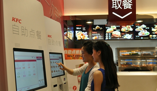 半個月前,肯德基繼在全國2200多家餐廳提供WIFI服務(wù),推出自助點餐硬件外,再度與支付寶達成全面合作,在上海和浙江的700多家餐廳接入支付寶支付,并計劃在全國的餐廳逐步推廣這一服務(wù)。顧客在肯德基付款時,只要出示支付寶錢包付款碼,讓收銀員掃一下后,2秒即可完成付款。相比現(xiàn)金方式,顧客使用支付寶錢包支付時無需準備現(xiàn)金,支付快捷,收銀員也無需找零,既方便了顧客也提高了收銀員的工作效率。
