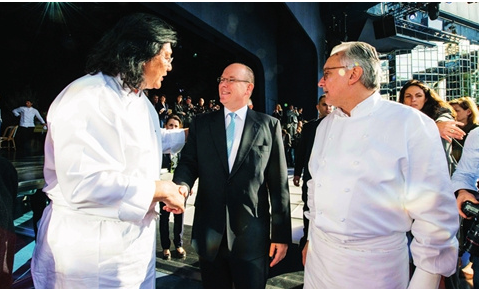 2012年11月的某一天,摩納哥路易十五餐廳里聚集了240位來自世界各地的名廚,這些廚師總共擁有300顆米其林星星,全部是擁有著“世界御廚”美譽(yù)的法國頂級(jí)大廚Alain Ducasse的邀請,來參加Alain Ducasse集團(tuán)25周年慶典。大董是其中唯一一位華人廚師,合影時(shí)主辦方特意將他安排在最前排。