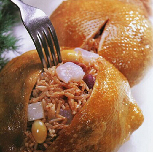 看樣子會以為這是一只炸雞,金黃的酥皮布滿均勻而細(xì)密的氣泡,然而咬破這層輕薄酥香半透明,絲毫不膩的雞皮之后,濃郁滾燙的雞汁就跟隨松軟入味的雞肉一起噴涌而出,完全酥爛并且包含各種香料氣味的雞肉,一碰就從骨頭上脫離,卻還有雞的滑嫩和鮮美原味。絕不像鹽?雞、白切雞或者北方扒雞,那口感更像是吃了一個燉雞天婦羅.這只費盡心機的雞叫葫蘆雞,始于唐代,有一個十分驚悚的故事。