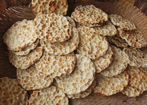 現(xiàn)在出門(mén),能吃到現(xiàn)打的燒餅已經(jīng)不多了,但是加工好的石子饃卻經(jīng)常能買(mǎi)到,買(mǎi)上一袋子酥香的石子饃,不論是淡嘴吃,還是抹點(diǎn)腐乳辣醬之類(lèi)的,都非常搭調(diào)。加了餡料的石子饃,如酥飴的糕點(diǎn),而我曾經(jīng)用原味的石子饃配食豬頭肉,簡(jiǎn)直是人間至味。