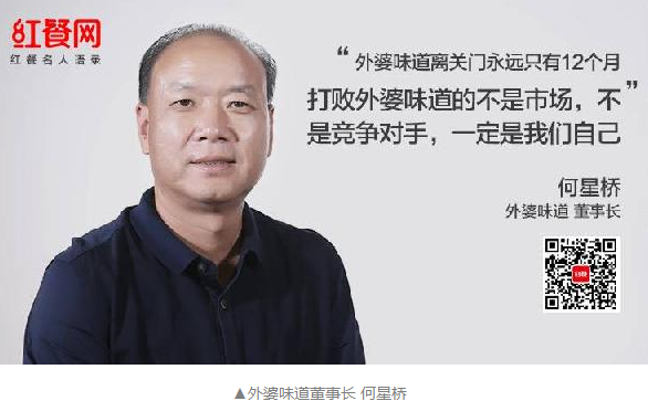 何星橋經(jīng)常對(duì)員工說的一句話就是,外婆味道離關(guān)門永遠(yuǎn)只有12個(gè)月。因?yàn)樵谒壑,打敗外婆味道的不是市場,不是競爭?duì)手,一定是我們自己。居安思危也就成了他事業(yè)的座右銘。