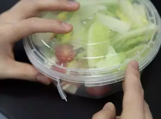 二是盒蓋上的雙層卡扣。普通的一次性塑料餐盒只有一層卡扣,外賣(mài)在配送途中難免因顛簸而出現(xiàn)湯汁撒漏。安全餐盒雙層卡扣的設(shè)計(jì),使得餐盒整體的密封性得到極大增強(qiáng)。在投放前,餓了么食品安全實(shí)驗(yàn)室對(duì)安全餐盒進(jìn)行了一系列嚴(yán)格測(cè)試。實(shí)驗(yàn)表明,裝滿湯水的安全餐盒在完全倒置且劇烈搖晃的狀態(tài)下,仍能保持零灑漏。
