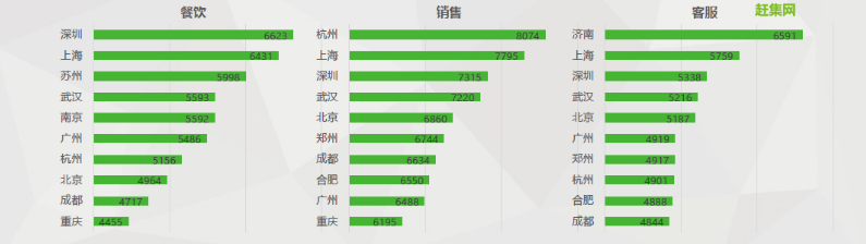 餐飲、銷(xiāo)售和客服人才薪資Top10城市