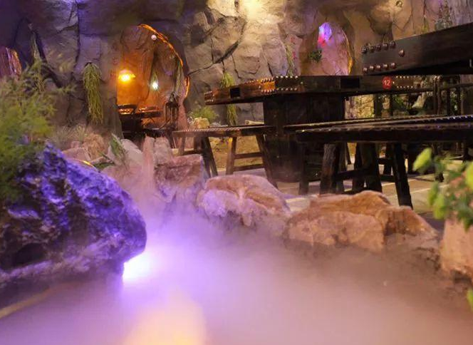 (山水溶洞火鍋內(nèi)部裝修如溶洞景區(qū))