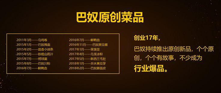 如他所說,“創(chuàng)業(yè)17年巴奴持續(xù)推出原創(chuàng)新品,個個都是原創(chuàng)并在業(yè)內打響,個個有故事,不少成為行業(yè)爆品”。